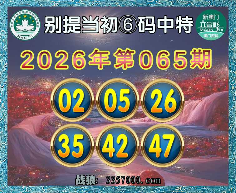 065期:【别提当初】 🥫⑥码中特🥫【02.05.26.35.42.47】开:05