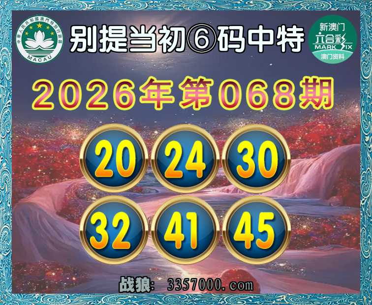 068期:【别提当初】 🥫⑥码中特🥫【20.24.30.32.41.45】开:23