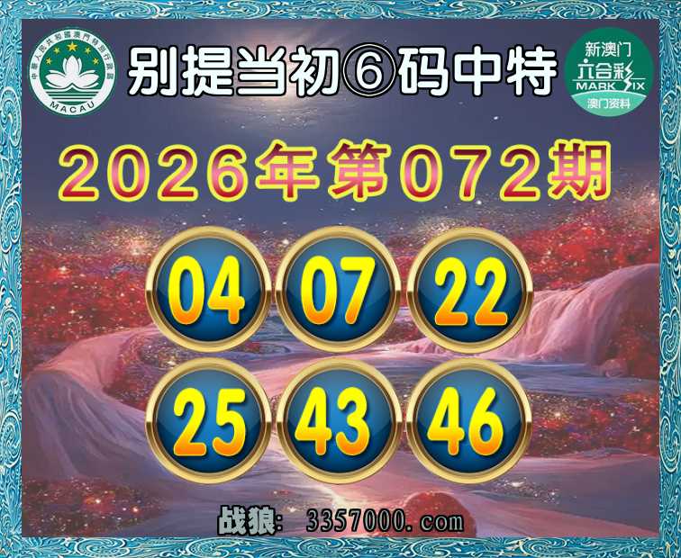 072期:【别提当初】 🥫⑥码中特🥫【04.07.22.25.43.46】开:46