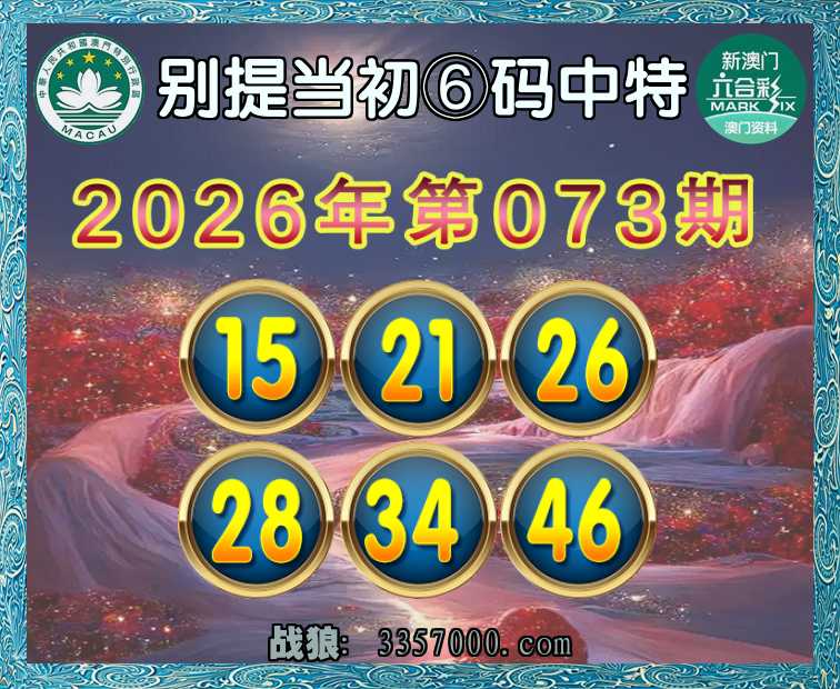 073期:【别提当初】 🥫⑥码中特🥫【15.21.26.28.34.46】开:34