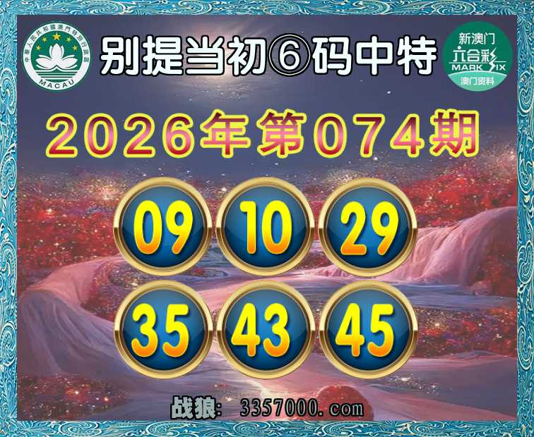 074期:【别提当初】 🥫⑥码中特🥫【09.10.29.35.43.45】开:00准